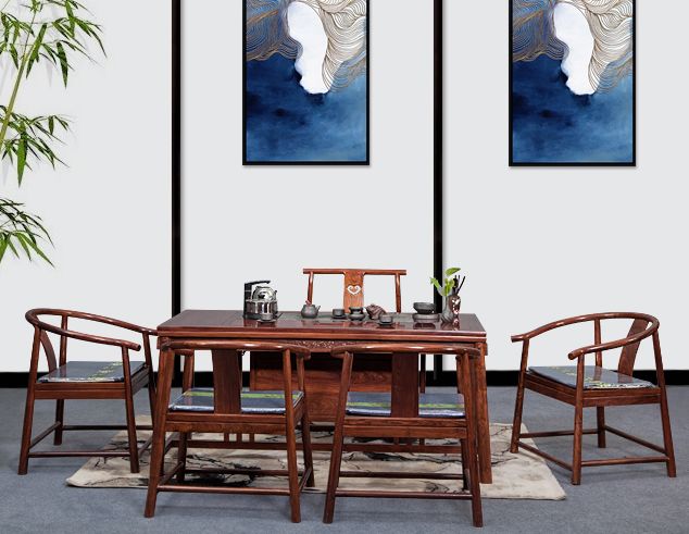 四、用料講究。真正的中國傳統(tǒng)紅木茶桌均用質地優(yōu)良、堅硬耐用、紋理沉著、美觀大方、富于光澤的珍貴硬木即紅木制成。