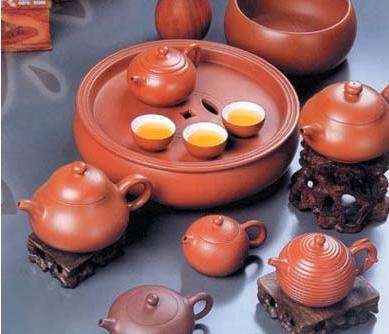 從工夫茶飲茶器具來看,先時潮人泡茶均崇尚蘇罐,即江蘇宜興產(chǎn)之紫砂壺。至今,老一輩茶人仍有“孟臣罐”(惠孟臣,江蘇宜興人,制壺名家,一說為天啟崇禎年間人,一說為清康熙雍正年間人)、“若琛杯”(若琛為江西景德鎮(zhèn)制杯名家)之口傳。據(jù)考,宜興紫砂壺的制作始于明代,至明中晚期形成較完整的工藝體系,從明萬歷到明末是紫砂壺發(fā)展的高峰,這也與潮州工夫茶的形成期基本吻合。潮州工夫茶一般只用小品壺(容量在120cc左右)沖泡,其它地方飲茶之用壺均用中品壺(容量大于200cc)以上,因此,潮州是宜興小品壺的主銷地,至今仍是這樣。潮州工夫茶的用壺方式,也影響到宜興紫砂藝人的制作技法,至今,仍有一些制壺工藝師到潮汕地區(qū)來學習工夫茶的沖泡方法,并把悟到的要點應用于紫砂壺的制作技藝中去,如壺體重心、容量、造型、出水通暢程度、適應泥質、壺蓋密封度等。