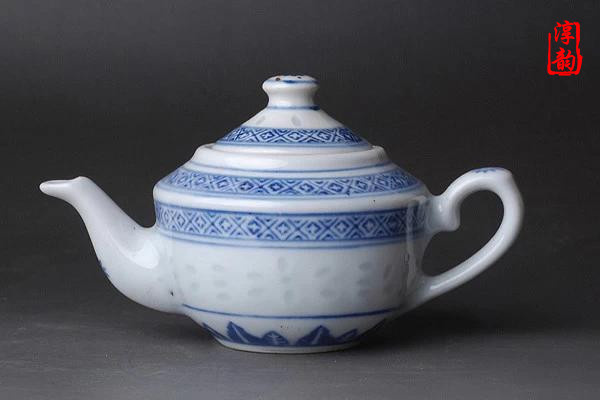 青花瓷茶具,其實是指以氧化鈷為呈色劑,在瓷胎上直接描繪圖案紋飾,再涂上一層透明釉,爾后在窯內(nèi)經(jīng)1300℃左右高溫還原燒制而成的器具。它的特點是:花紋藍(lán)白相映成趣,有賞心悅目之感;色彩淡雅幽菁可人,有華而不艷之力。加之彩料之上涂釉,顯得滋潤明亮,更平添了青花茶具的魅力。
