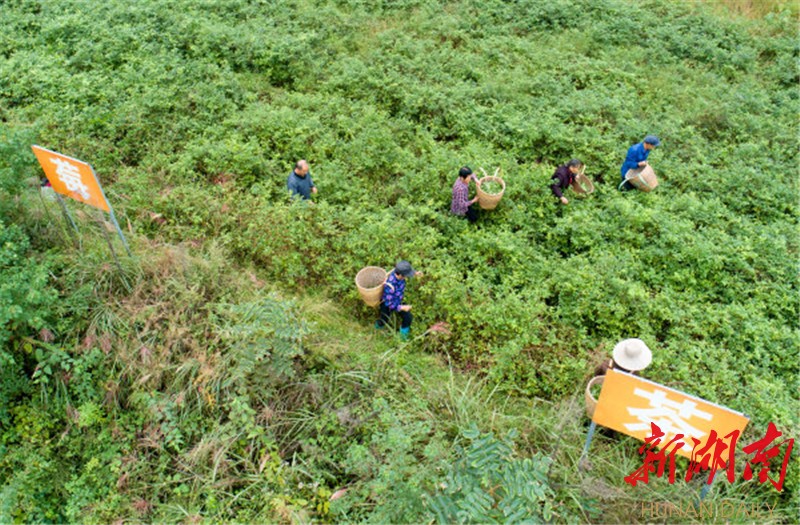 (10月10日,張家界市永定區(qū)教字埡鎮(zhèn)七家坪村,村民在莓茶專(zhuān)業(yè)合作社采摘莓茶。)