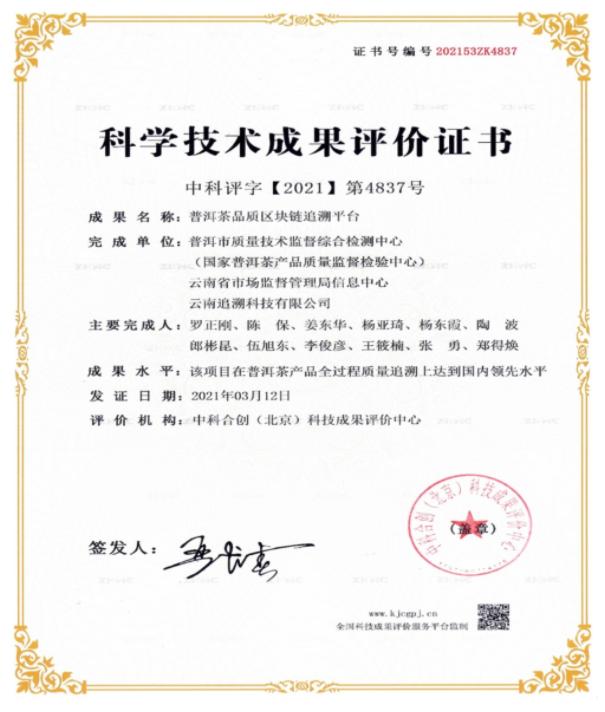 云南普洱茶品質(zhì)區(qū)塊鏈追溯平臺項目科技成果取得新成效