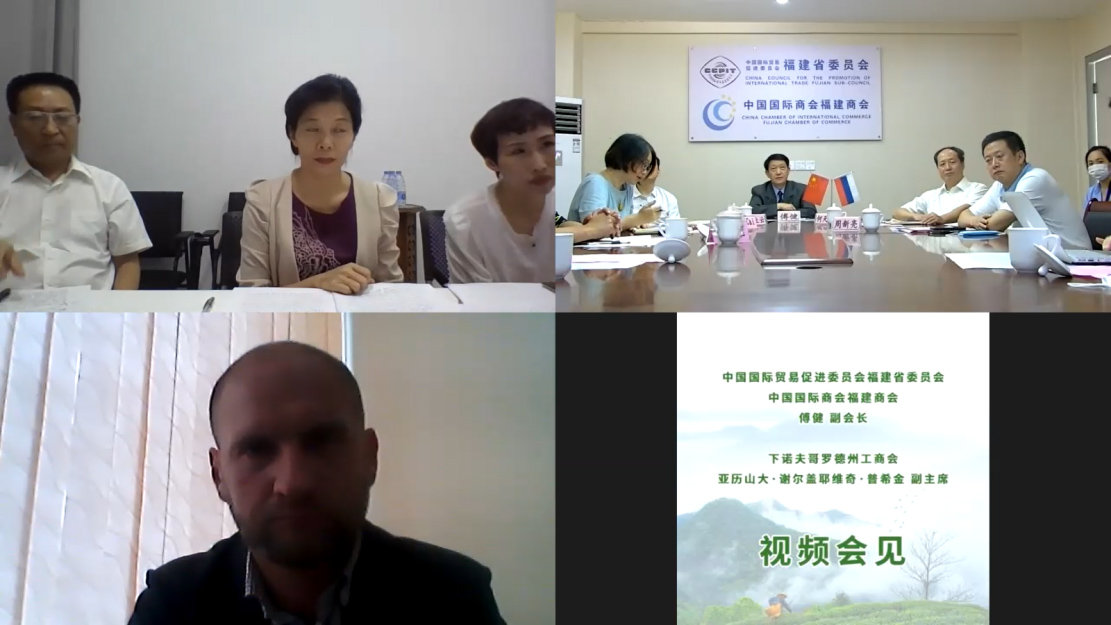福建省貿(mào)促會(huì)與俄羅斯下諾夫哥羅德州工商會(huì)視頻會(huì)見現(xiàn)場(chǎng)